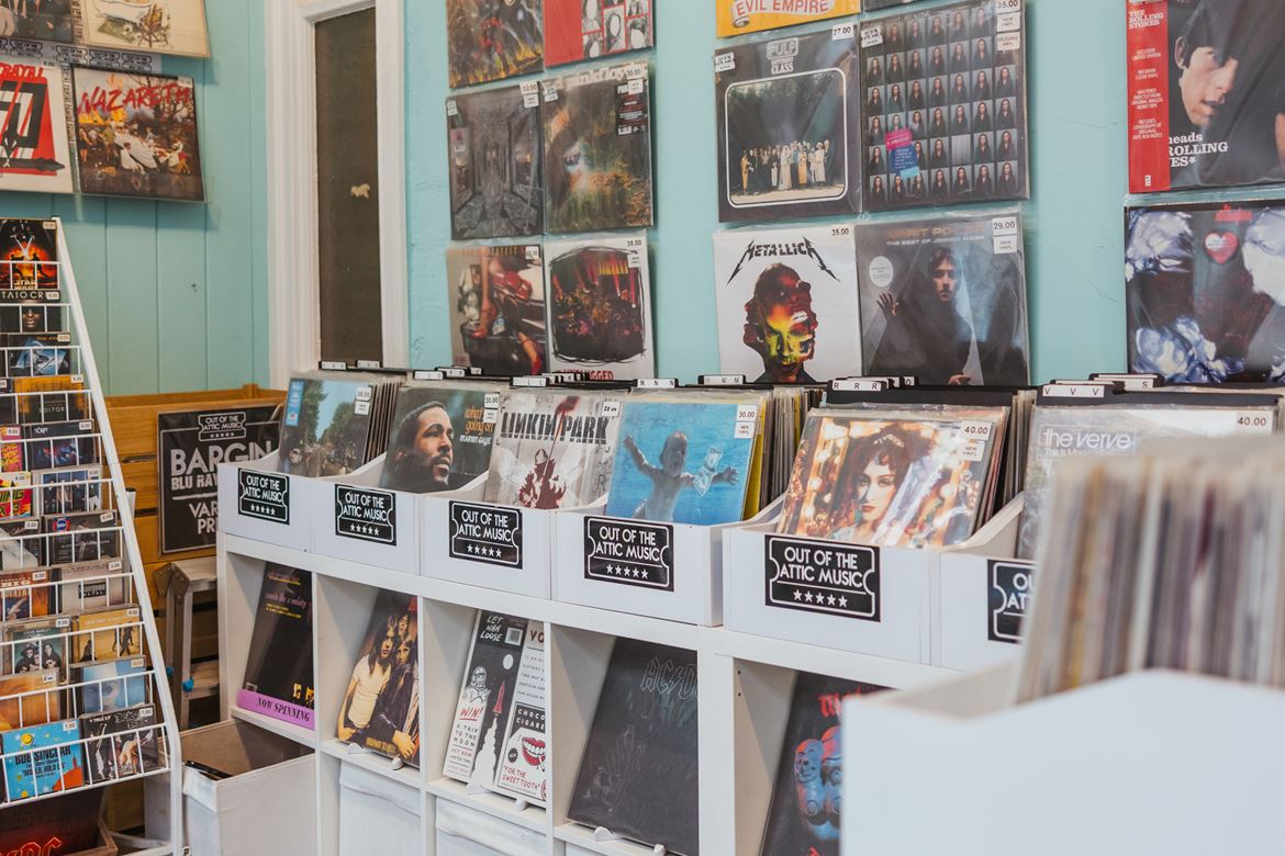 At Out of the Attic Music, we’re all about the love of the find — the albums you’ve been hunting for, the ones you didn’t know you needed, and the ones that bring a memory rushing back the second the needle drops. Our shelves are filled with hand-picked vinyl across every genre, along with vintage band tees and the kind of music chat you only get from people who genuinely care. Whether you’re a collector, a casual listener, or someone rediscovering vinyl for the first time, we want you to feel right at home here.